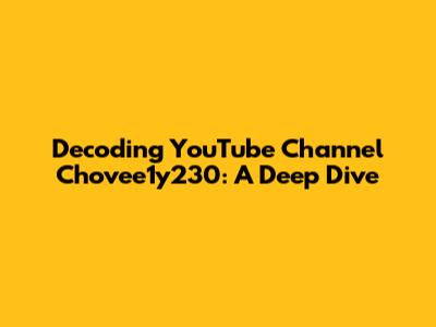 Hey everyone, let's dive into the fascinating world of YouTube and dissect the channel known as Chovee1y230! This article is designed to provide you with some real insight into the channel's content, strategy, and overall impact. We'll be exploring everything from the type of videos they create to how they engage their audience. So, grab your popcorn, and let's get started.